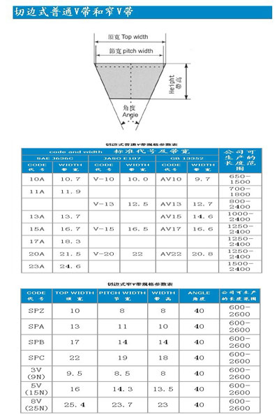切邊式V帶可分為普通V帶和窄V帶其具體參數(shù)請點(diǎn)擊'參數(shù)表':